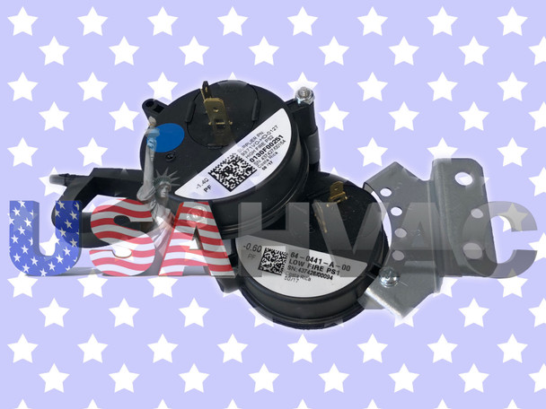 This is a brand new OEM Goodman Amana Janitrol upgraded Furnace Air Pressure Switch. This is a dual air pressure switch. Each switch contains two wiring terminals and one hose port. It replaces the part numbers listed below.
