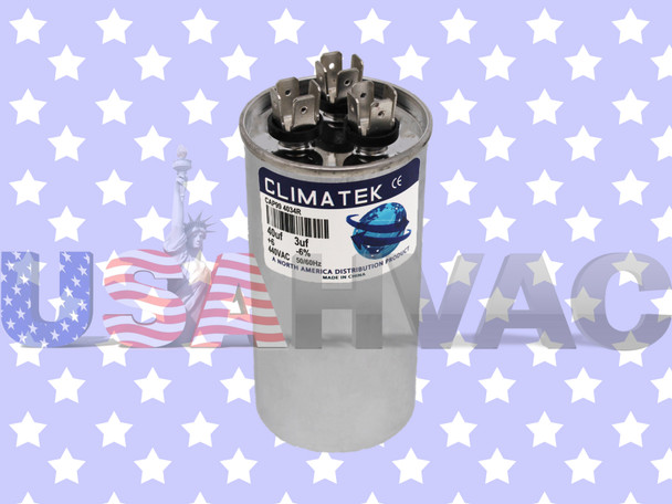 This is a new ClimaTek Capacitor Dual This is a dual round capacitor. It is rated at 40+3 MFD and 440 VAC, which is an upgrade for old 370 VAC capacitors. It replaces the part numbers listed below.