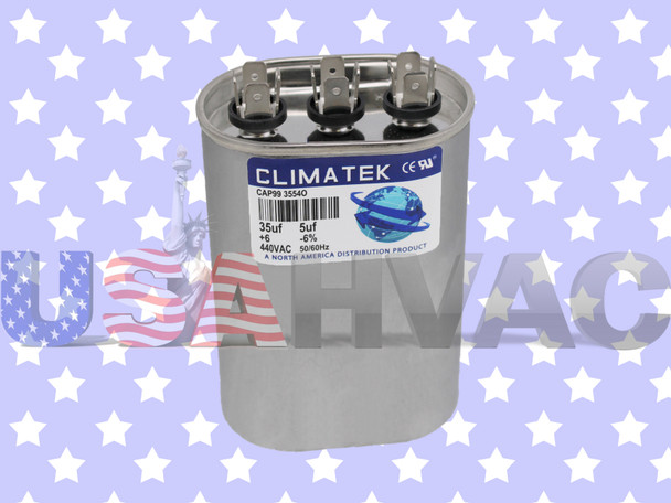 This is a BRAND NEW ClimaTek Replacement for Lennox Armstrong Ducane 35/5 uf MFD Oval 370 / 440 Volt Capacitor. It replaces the part numbers listed below.