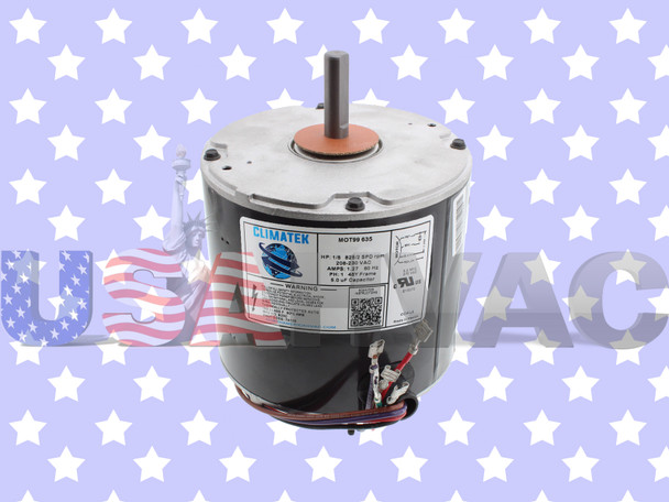 This is a new ClimaTek Condenser Fan Motor It is rated at 1/5 HP, 208-230 volts, and 825/2 SPD RPM. If the shaft is seen facing up (as in the photo) the rotation is counter-clockwise. It replaces the part numbers listed below.